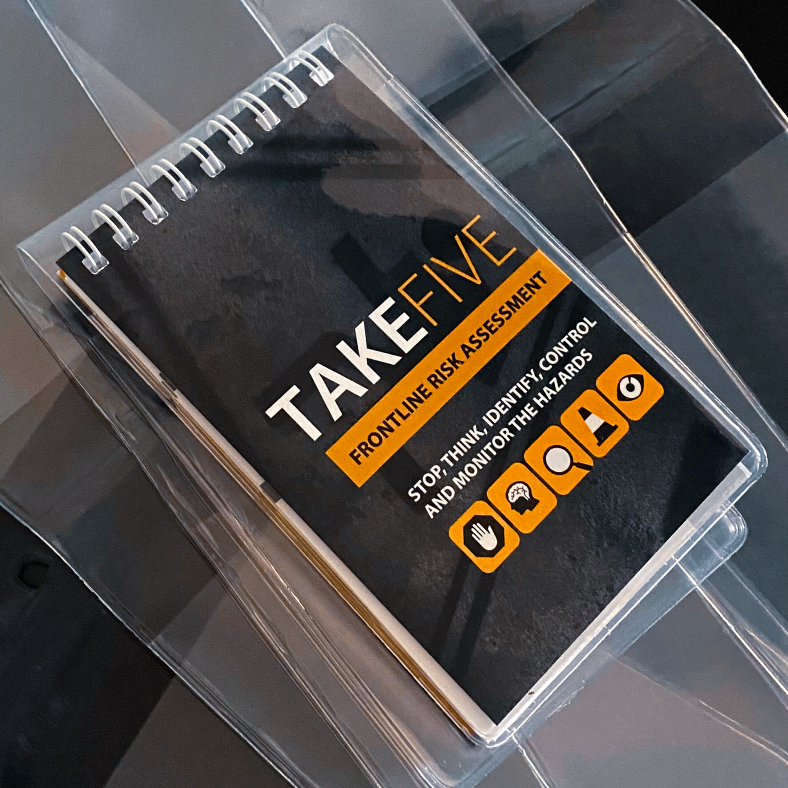 Protect your TAKE 5 safety books with a protective TAKE 5 PVC Folder. The TAKE 5 PVC Wallets are clear PVC and can fit a single 80 x 130 mm booklet inside.